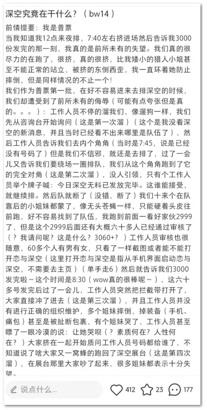 其次,即便弄到了票,有些事也不让人省心。许多人为了能抢到自己喜欢的无料,买到心怡的周边,凌晨进行夜排,相当辛苦。