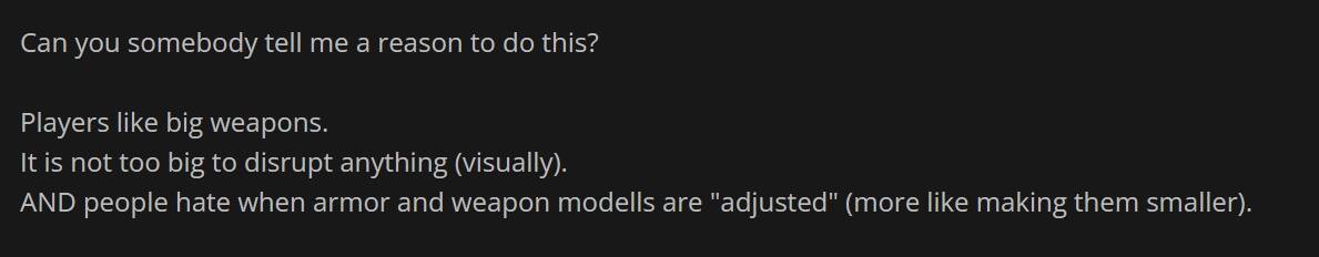 在喜欢巨大武器模型的玩家群体中,该改动引发了明显的不满。