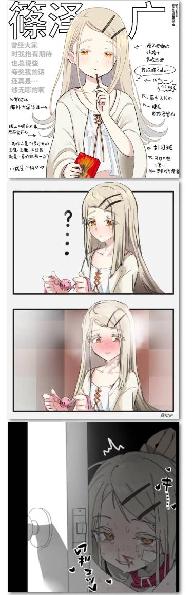 而根据多方网友的说法,在相关同人二创当中,数量排名第一的是筱泽广这位角色,她的人设是瘦弱骨感的天才美少女,跳级读完大学后又来到了偶像学园(中专)进行深造,原因是她觉得偶像是一种挑战,每次排练完都奄奄一息感觉会死在手机里,但她自己心里很满足,给人一种“是抖M呢”的感觉,因而相关的下流同人作品也会比较多。