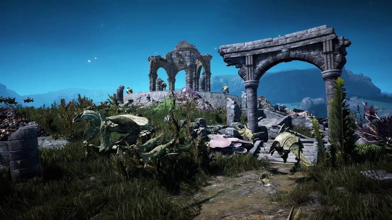 进入上层海底遗迹后,你会在一片广袤的平原上看到四处散落的断壁残垣。慢慢靠近后触摸墙壁,冒险家们能体会到厚重的历史感。此时不禁让人畅想,这些建筑在完好的时候,这个地方会是多么的繁华热闹。