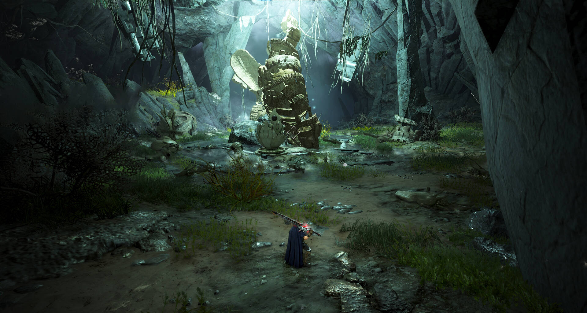 深层海底遗迹像是上层与普罗提洞穴的结合。不仅有深邃的洞穴,同时也有更多神秘的建筑,某些墙壁上还会有无法辨识的文字。不时经过的怪物,更是会在你放松警惕的时候给你致命一击,这里处处透露着危险与神秘。