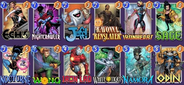 实不相瞒,笔者本周就是【纳摩拉】系统自动组牌上的天梯无限。获胜方程式清晰明了,牌序好且对手没反制牌便可果断snap,【王】来了就相当于游戏赢了一半,没来就安心点下“撤退”按钮,突出一个放松大脑式玩法,更何况还能时常骗人机8分,确实非常适合容易变得枯燥的上分之路,在此诚挚推荐。