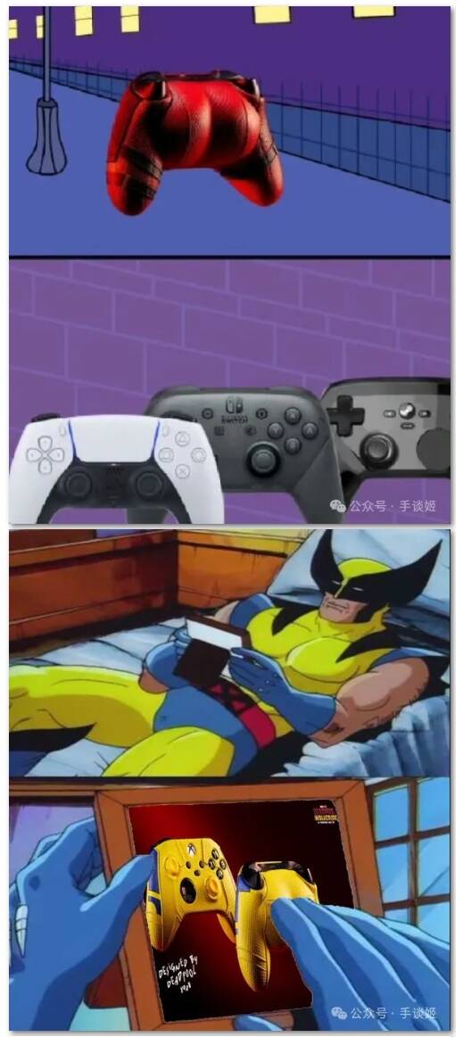 这俩均由“死侍”设计的手柄,一个还原了死侍的着装与配色,另一个自然还原的是金刚狼。虽然纹理啥的一看就设计得很精致,但大家的关注点完全在另一个方面: