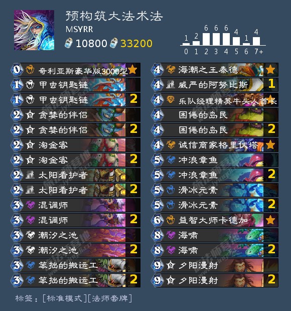 如题,这套带了六张2以求触发给币伴侣快速跳章鱼骋,477,435,333嘲讽可以用来前期混一混过渡,潮汐之池能够保证这套牌可以用法师的一些优质小法术,牛牛里面塞星空球,回档混响和一张用来打斩杀的火球,奇利亚斯可以根据环境选病毒完美或者计数完美,如果慢速多了的话可以考虑带导演等后期牌
