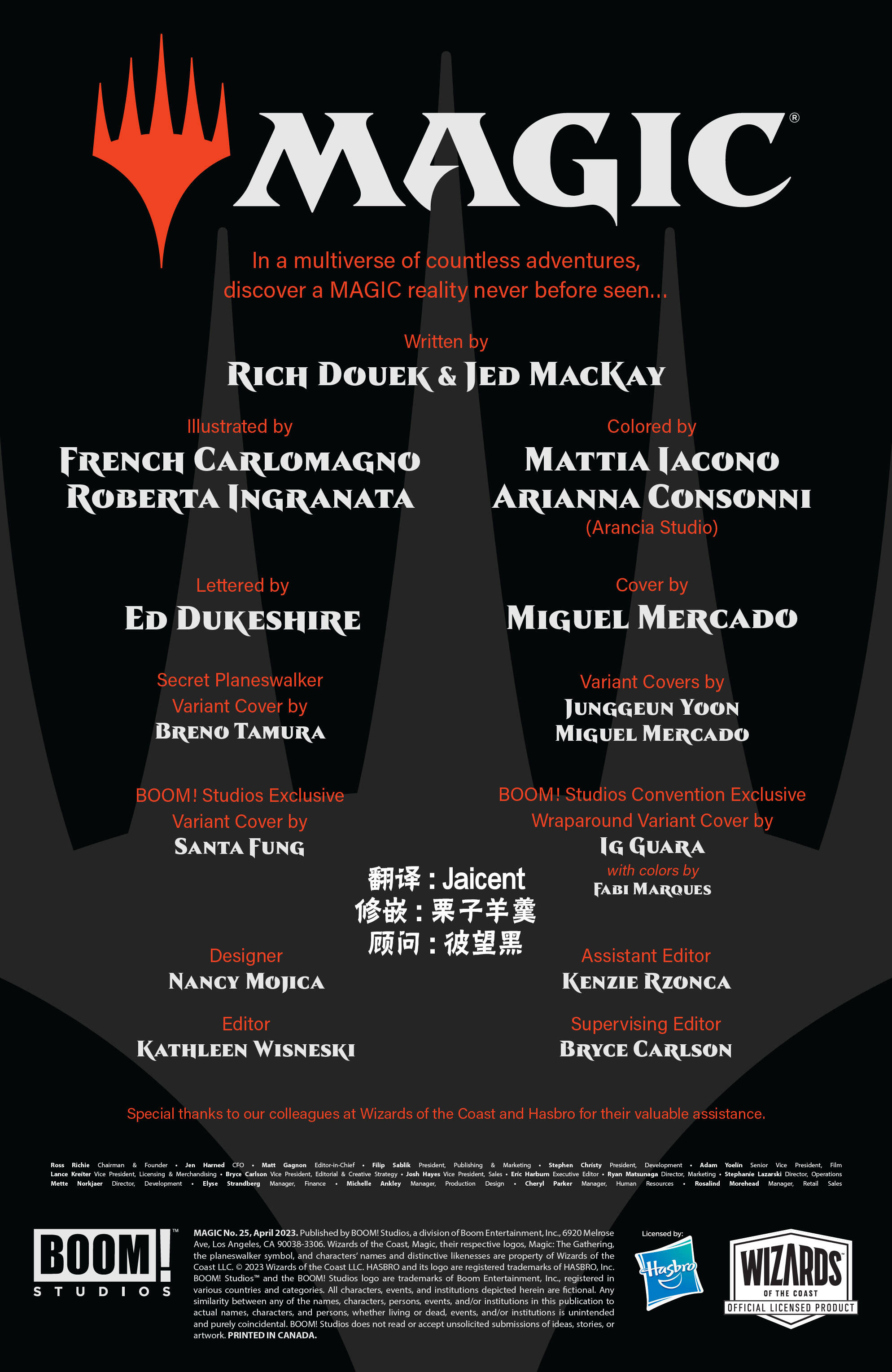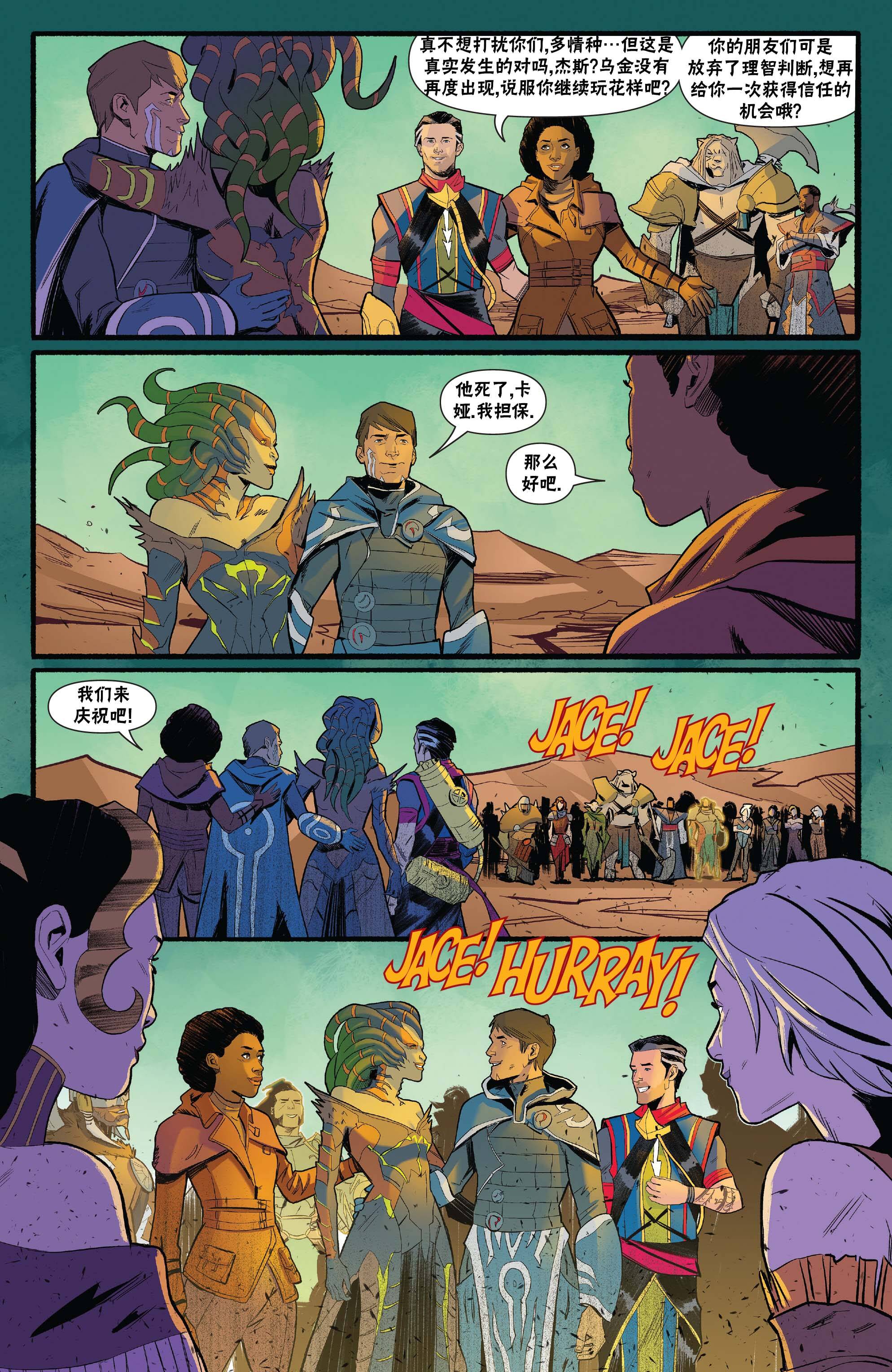 Moom!连载的万智牌漫画是官方授权的外传,内容和主线剧情无关,可以看做是基于原有角色和背景设定的平行宇宙(多重宇宙的平行宇宙...?)。命运之战是整部作品的第五部。