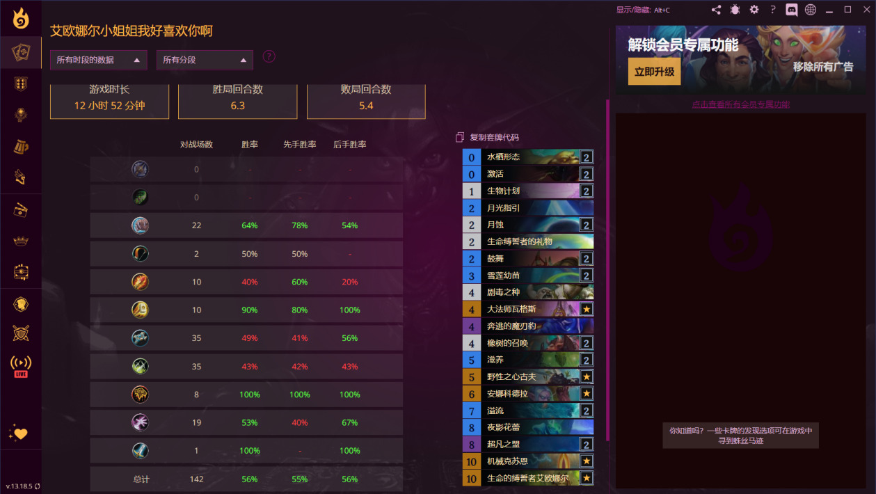 换家德:大优。很好的印证了“换完也不一定赢”这句话。多数换家德都选择携带奇利亚斯来针对奇迹贼,这就导致其有可能香瓜启动失败,就算对面天胡启动了,没抽到机克就不能说赢,而且对面牌库里都是德鲁伊通用的跳费和自然法术,不会卡我们启动。如果知晓对方是换家德,可以起手留机克,对面因为格子问题,窃魂者后也无法斩杀我们。