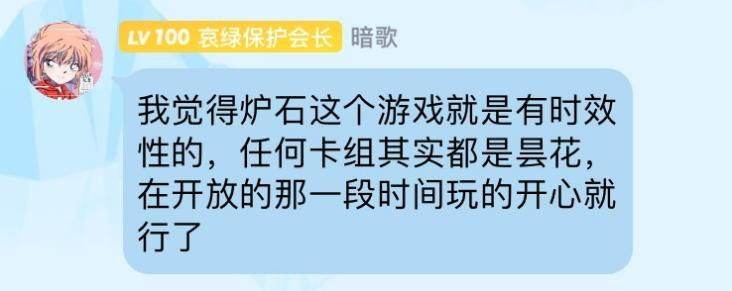 - 泰坦:不再担心卡格子问题后,泰坦毋庸置疑成为了织法蓝龙的上位替代。虽然最常见的用法仍是抽牌,但泰坦本身就是个功能非常多样的牌,缺安娜时回费,打快攻充当雷诺,召唤55树人走剑宗思路等等,而且被脏鼠拉出来也是个极具威胁的存在(不会有人2费打脏鼠吧)。除此之外,橡树/花蕾拉出泰坦,可直接进行过牌等操作,这也是其相较于织法蓝龙的主要优点之一。