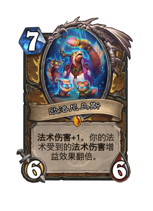 如果打出两张欧洛尼乌斯,横扫就会变成24点伤害,这是横扫的4点伤害,加上2点法术伤害,再一起翻倍两次的结果