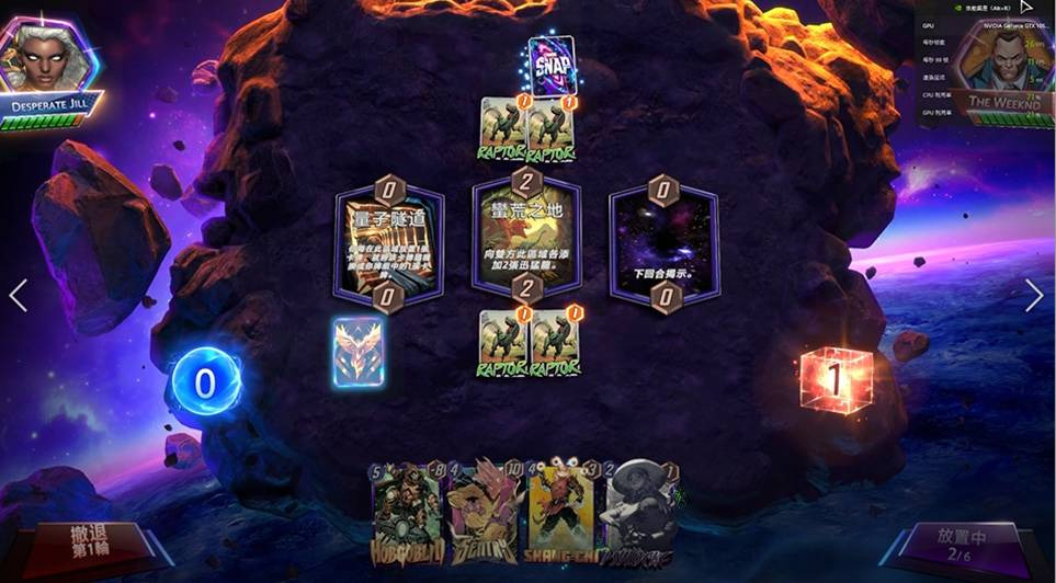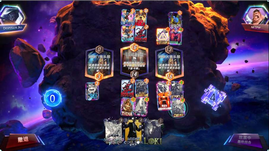 随后等待出牌时间结束,则到了该回合的揭开阶段。双方依据先后手依次揭开当回合所打出的卡牌并触发卡牌特效,结算当回合场地点数。到此,双方共享的这一回合结束。