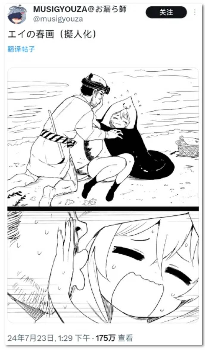 于是一些日本网友一边开始表达不满,一边开始掘史。那幅“鳐鱼的春宫图”,便是在这样的背景下登上了热门趋势,虽是一个诡辩,但画面冲击性贼强,又是与此事件相关,因素相互叠加,因此热度猛涨。