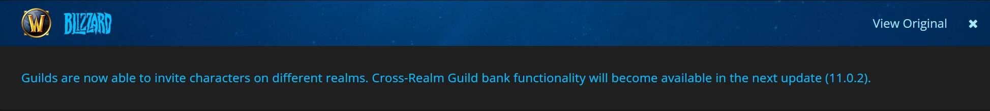 在《地心之战》资料片之前,工会是不能跨服的。随着《地心之战》资料片前夕版本的更新,暴雪于今日发布蓝贴称,工会跨服功能已正式实装。