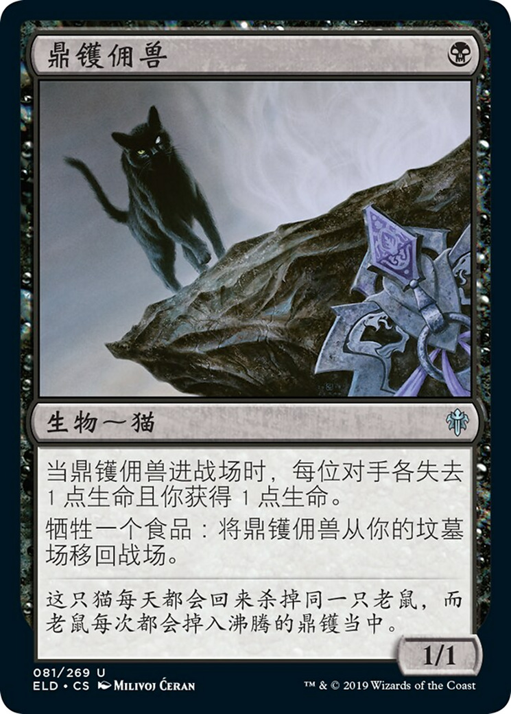 本身566的身材加上,一条保护异能也算得上优秀,同时也具有膨胀的可能,但最吸引我的是它可以将在场全部生物额外具有食品类别这条异能,这让我第一时间想到了鼎镬佣兽这张猫炉卡组的重要组件,我也惊奇地发现这两者之间的配合可以达成强力的组合技。