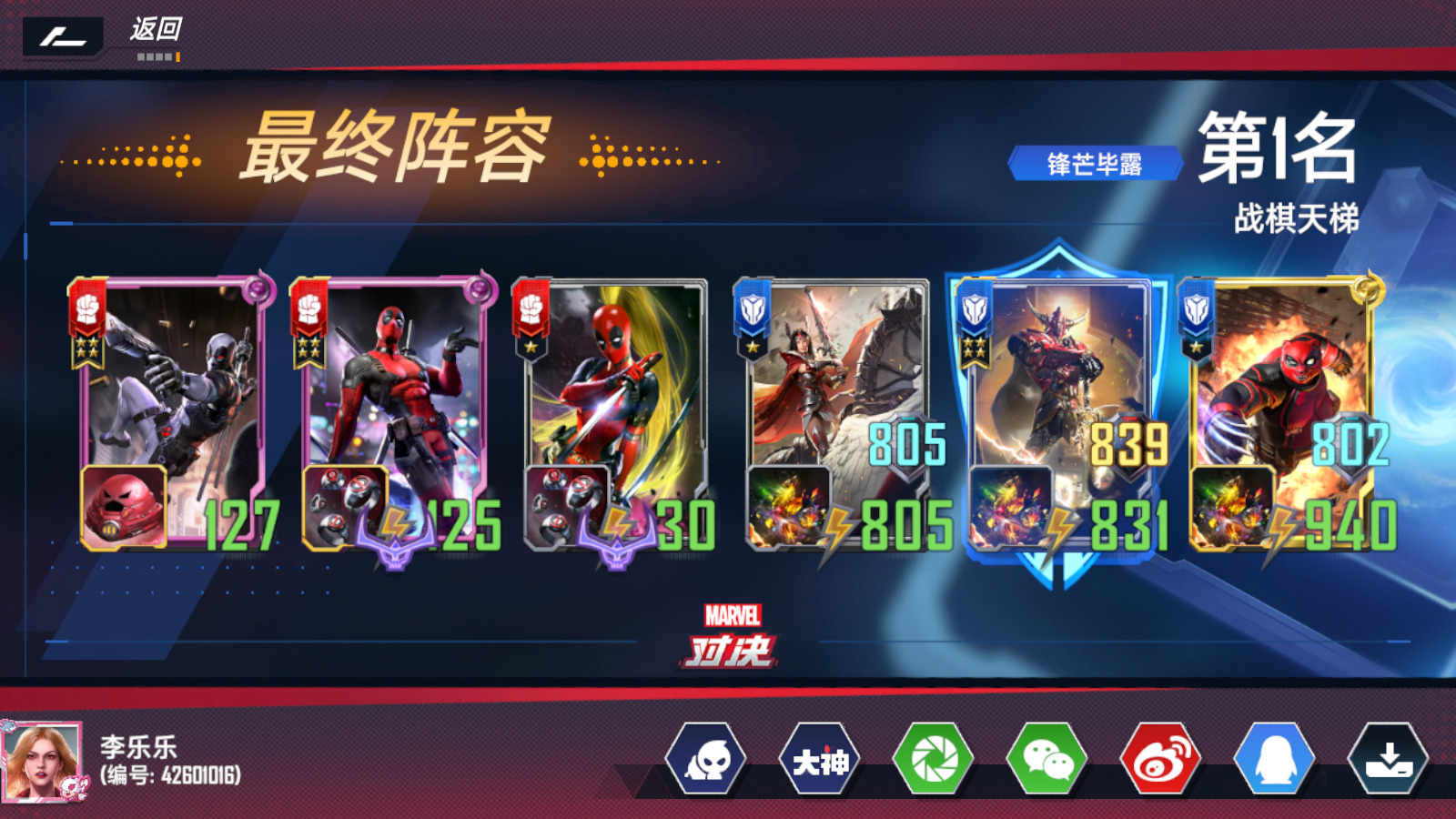 大家好,我是“天机。”战队的李乐乐,编号:42601016。随着《死侍3:死侍与金刚狼》的上映,游戏也是更新了一波死侍卡组,对于死侍这个能突破次元壁的角色我本人是非常喜爱的。犹记得当年的复活死侍点子死侍针对死侍等等流派的强势,后面无赖时间宝石的界死侍龙,基本是每个赛季我都想拿新的东西搭配死侍出来玩玩,奈何一直找不到好的思路。随着电影的上映,S34更新了界白死,可爱的给对手加血,这个想法真的是很有意思,不过也很怕夜巡,我试过配艾丽卡配希娜等等营地伙伴的思路,都很优秀强度在线,但是感觉始终不适合自己,所以我自己尝试搭配了一下现在依旧大火的命石,没想到效果出奇的好,现在分享给大家。