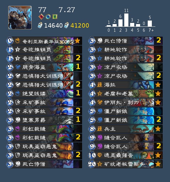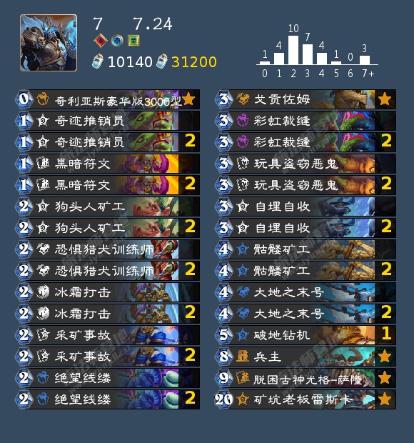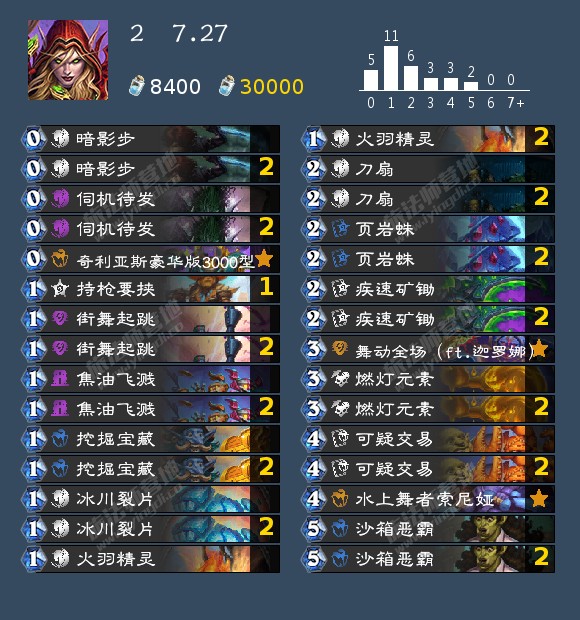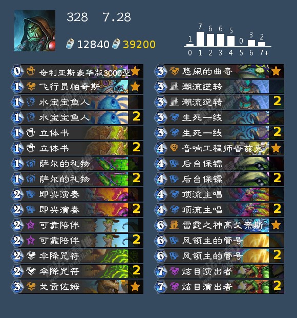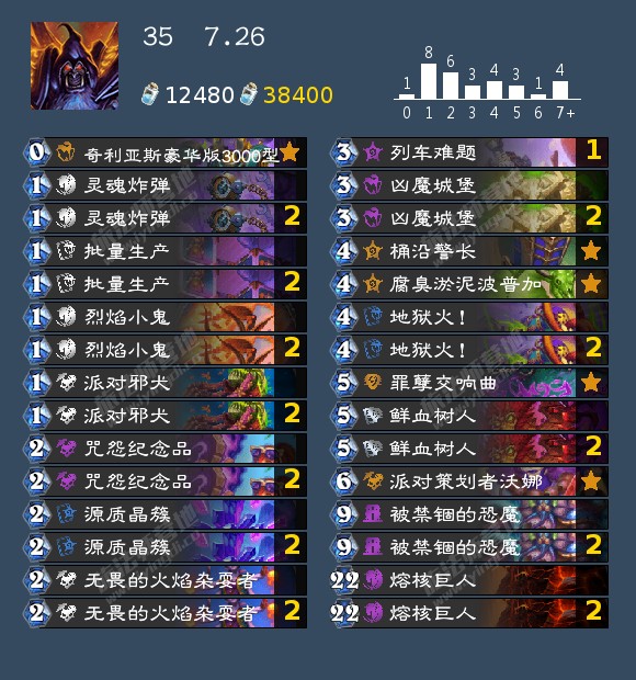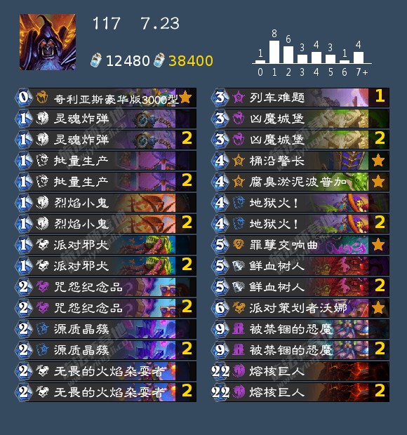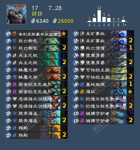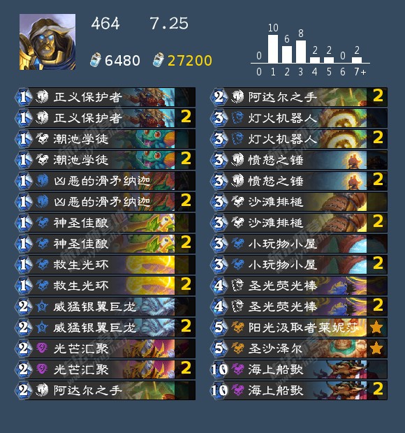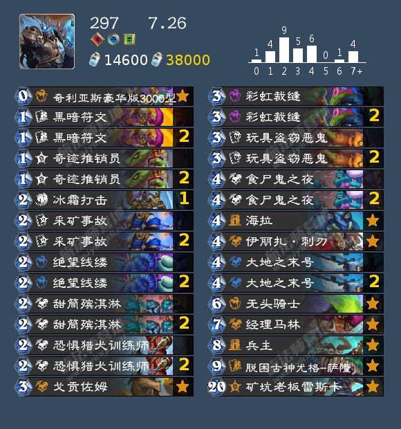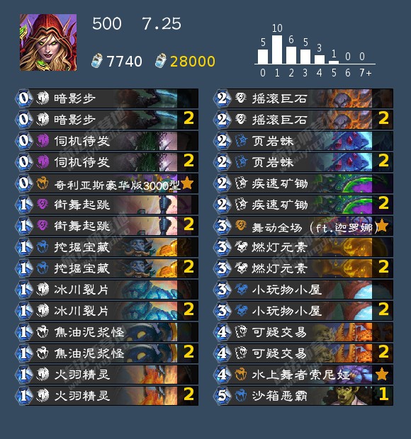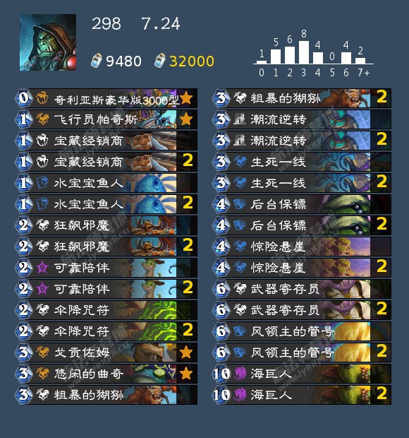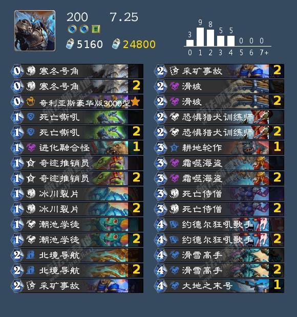 - 蓝绿DK(200)抽象卡组,我盯着看了几分钟没看明白怎么玩,卡组介绍是说322海盗很强,用冰冻打伤害,再就是死亡嘶吼传亡语给融合怪。作者x账号:@Obivank92963107。有兴趣的可以看看原作者。只能说是个可玩思路, 不推荐合卡。奇利亚斯完美计数。