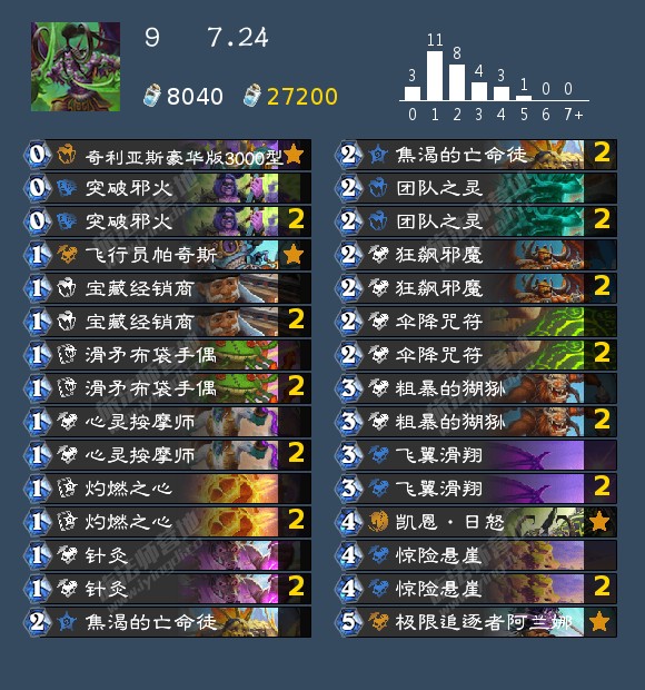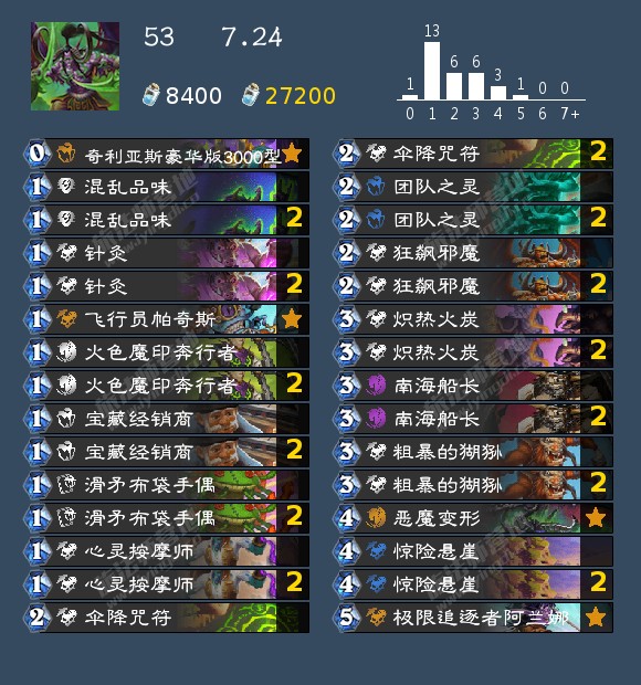- 海盗瞎(9,53)评价为快攻高手。奇利亚斯是输能计数。