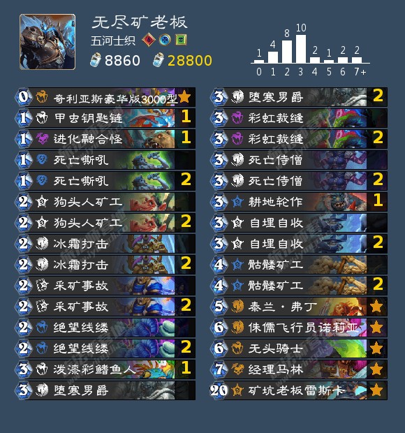 对战士优势,娱乐卡组。正常情况可以把防战打吐。奇利亚斯完美和减费