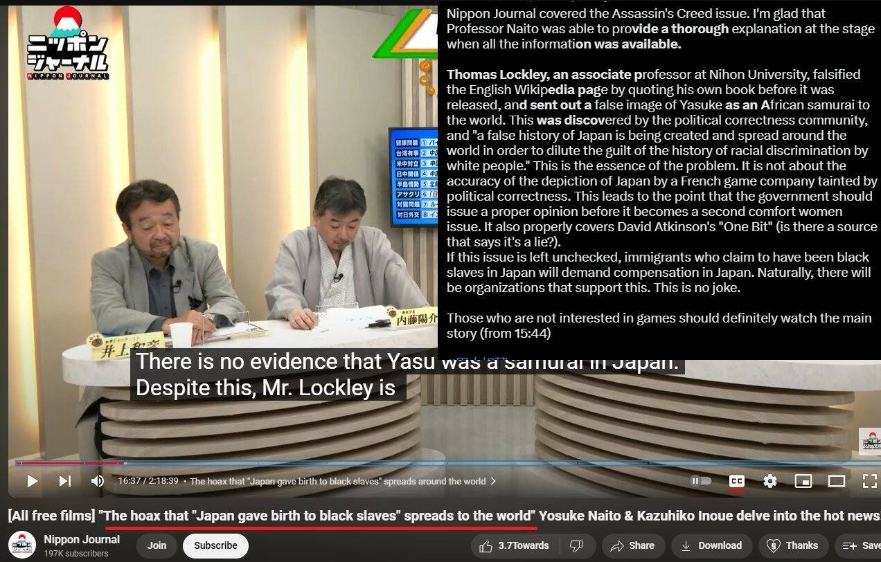 据悉,托马斯·洛克利发是日本大学法学部副教授。最近有证据表明,在他的传记小说出版之前,他曾多次修改关于弥助的wiki资料,以逐渐改变人们对弥助的看法。然后他又将这些资料内容引用在自己的小说里,做得有模有样,可谓“引经据典”。