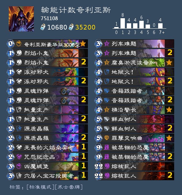 前言:笔者在国服尚在的时候就是狂野黑眼术的重度爱好者,在国服关闭后就没再打过炉石,在上版本听闻国服要回归固进入亚服复健并意外发现了我最爱的自残卡组(就是喜欢对面一下不打我,我自己打自己29血的感觉)并不断优化打入前百,并在这个版本以28场57.14的胜率打到第20名。