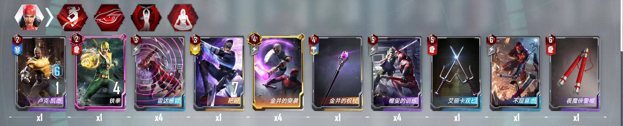 2费异界铁拳,前几回合战力顶梁柱(带了12张任务)还能给卢克加战力,卢克无损滤牌。3费靶眼加任务。