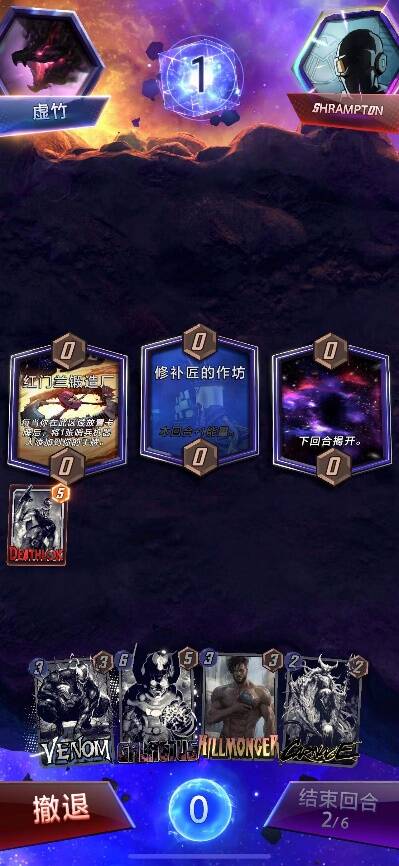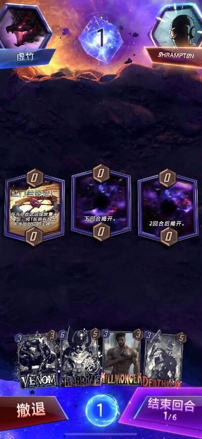 可以看到我们的起手并不好,1费牌一张也没来,只能空过,但手牌中有毒液,还是可以看看牌打一打。