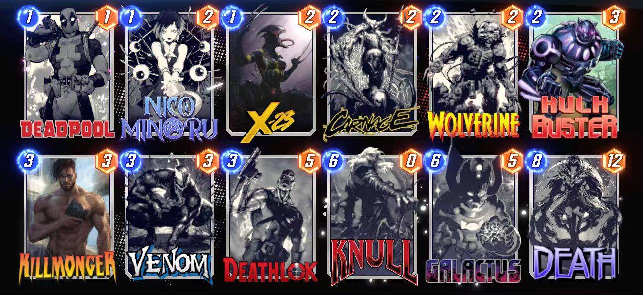 毒液,摧毁流卡组中最最最核心的大哥,没有之一。毒液在摧毁流中的打法是尽量在第五回合吃掉死侍或金刚狼,从而最大化战斗力,甚至在最后一回合配合电视机可以打出奇效。