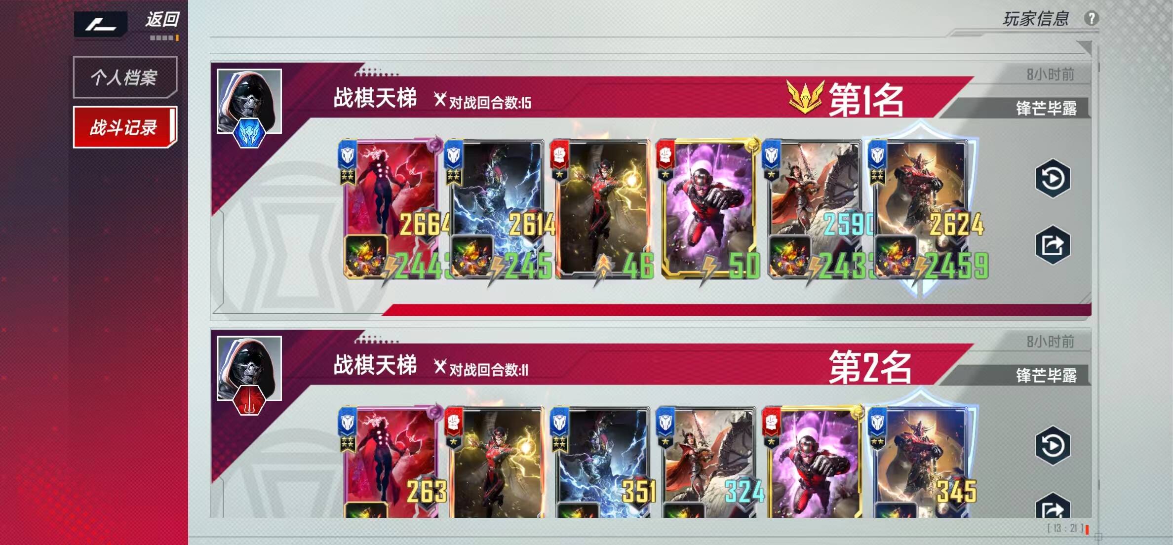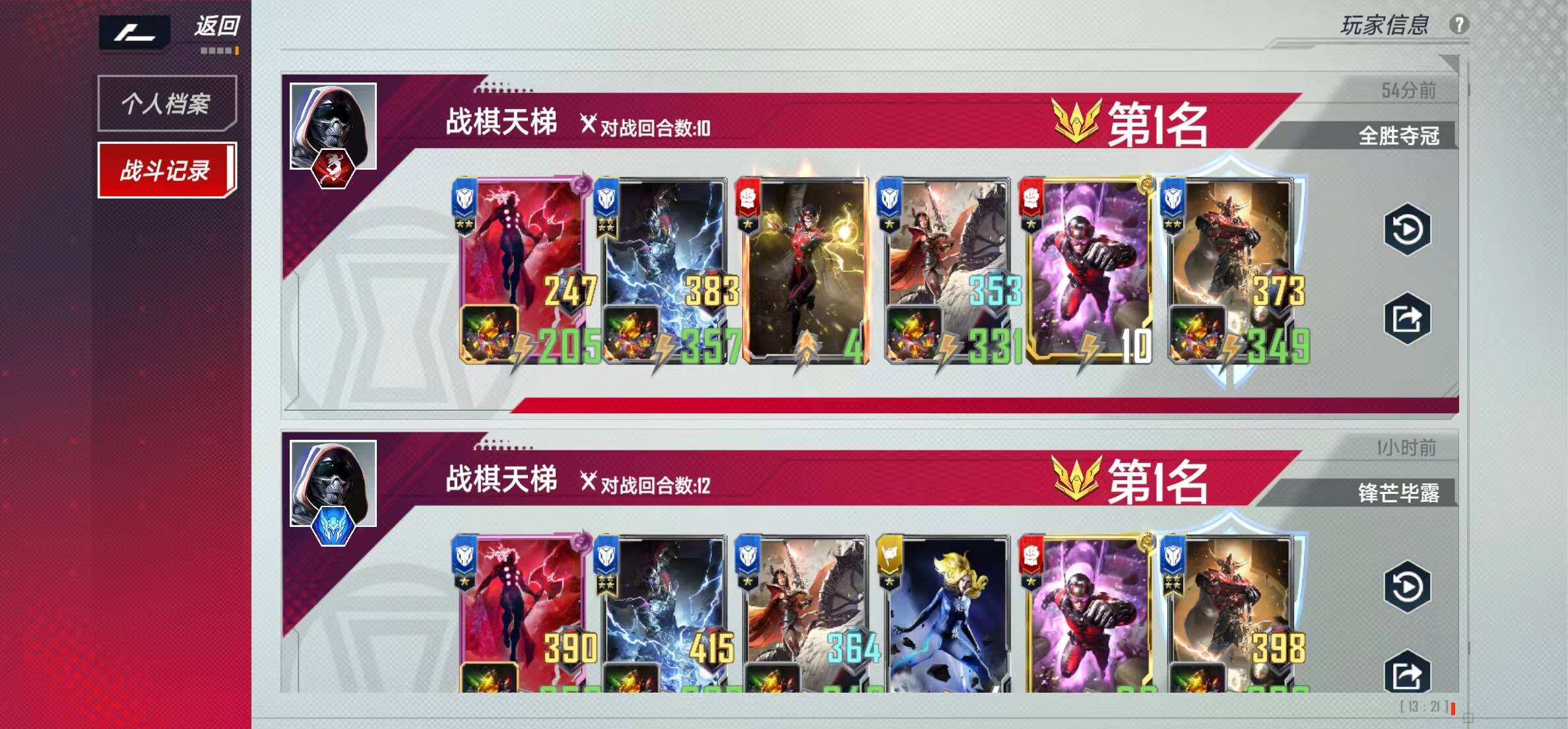 先分享一下近期的几张战绩图: