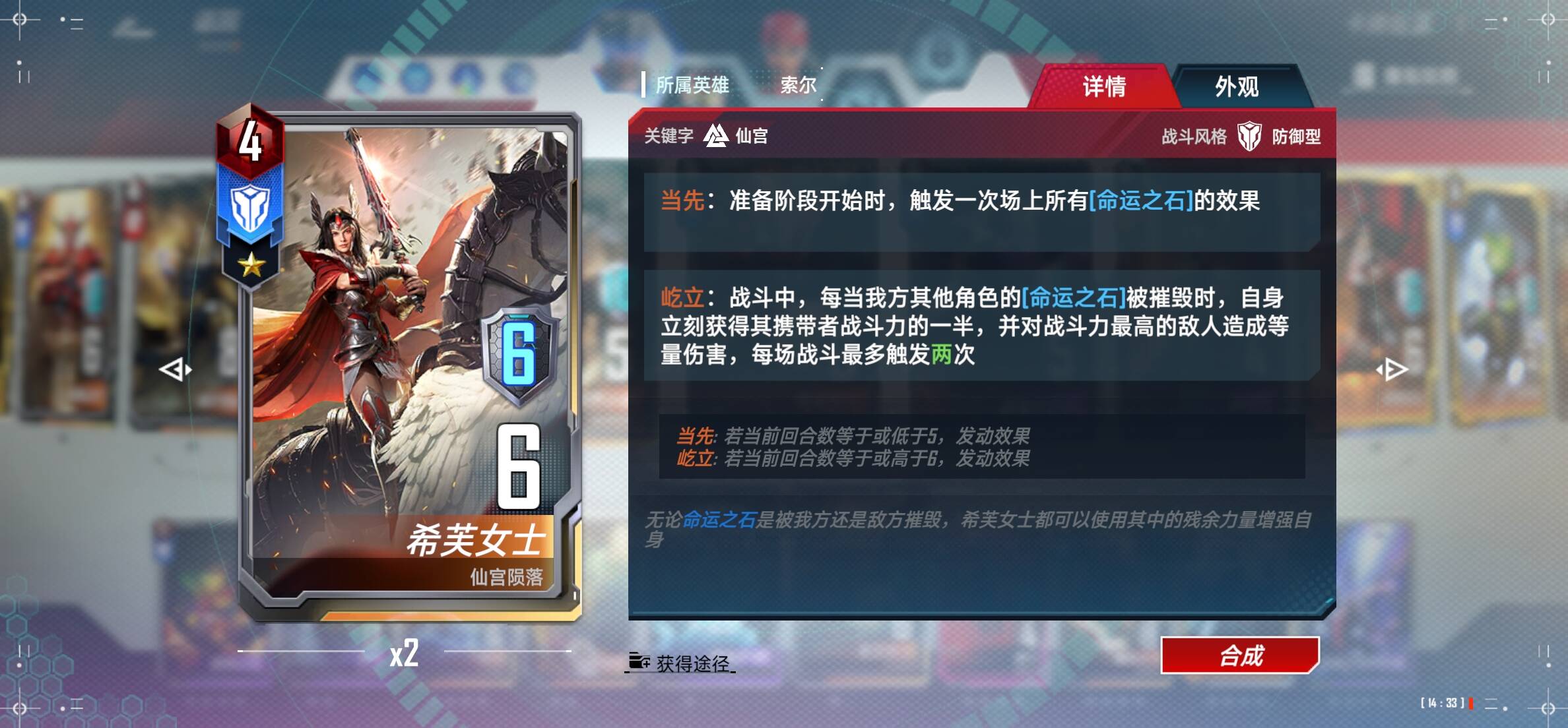 阵容可以随意调整。注意的是三张屹立卡的技能情况,有需要就用仙宫陨落调整一下。只要调整到这个状态就可以了。