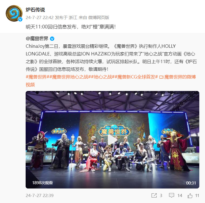 炉石国服发布回归信息最后的预告 “橙”意满满