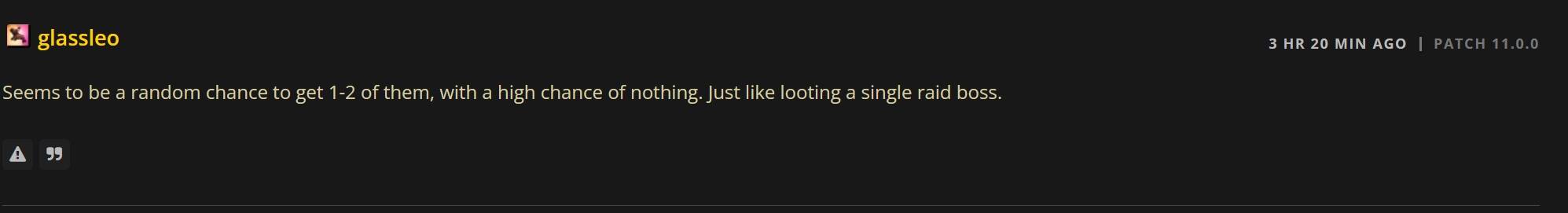 但是截止目前,仍有部分玩家称日常并不会正常掉落“古老的青铜锭”,玩家实测掉落是随机的,几率和团本BOSS一致。