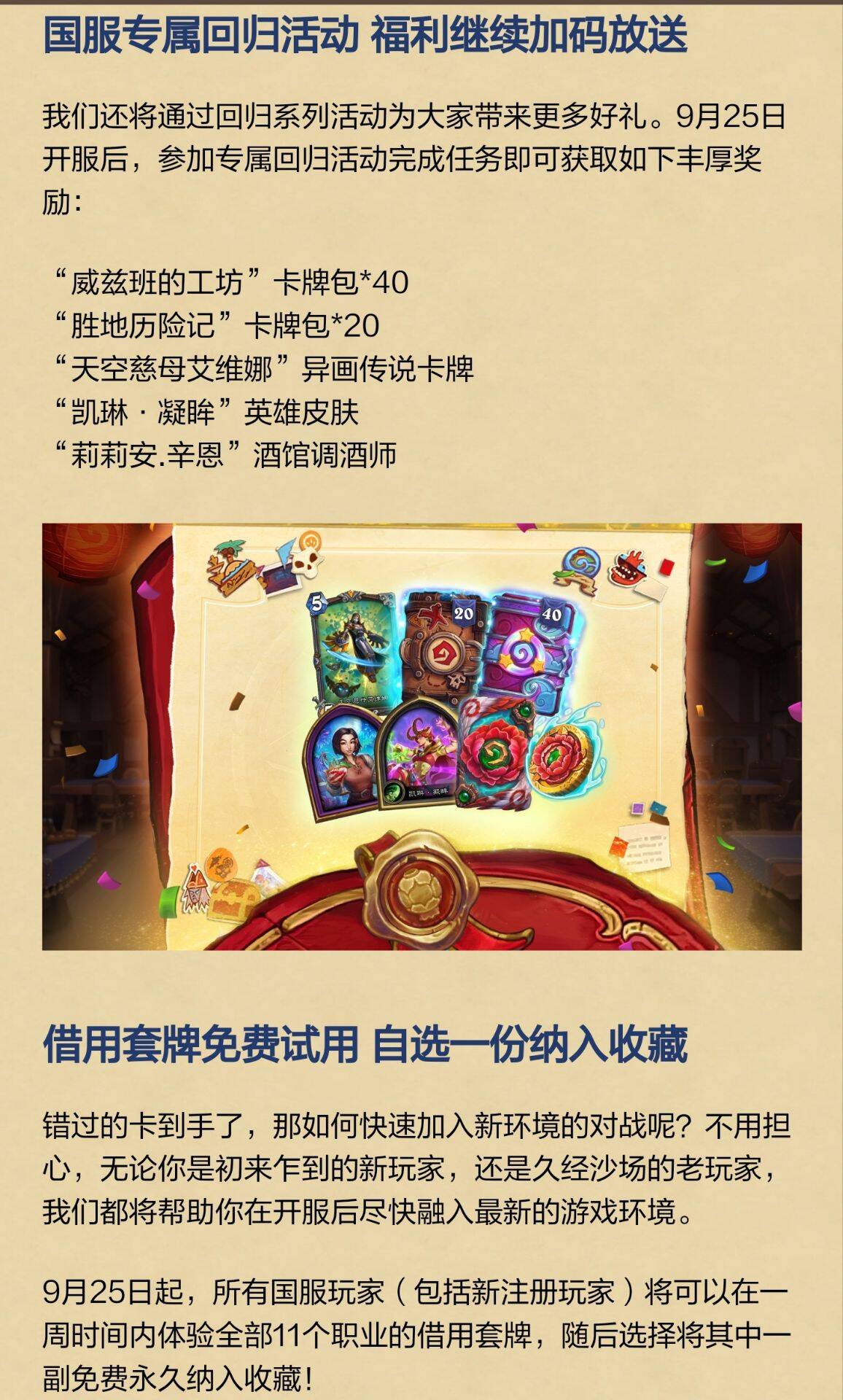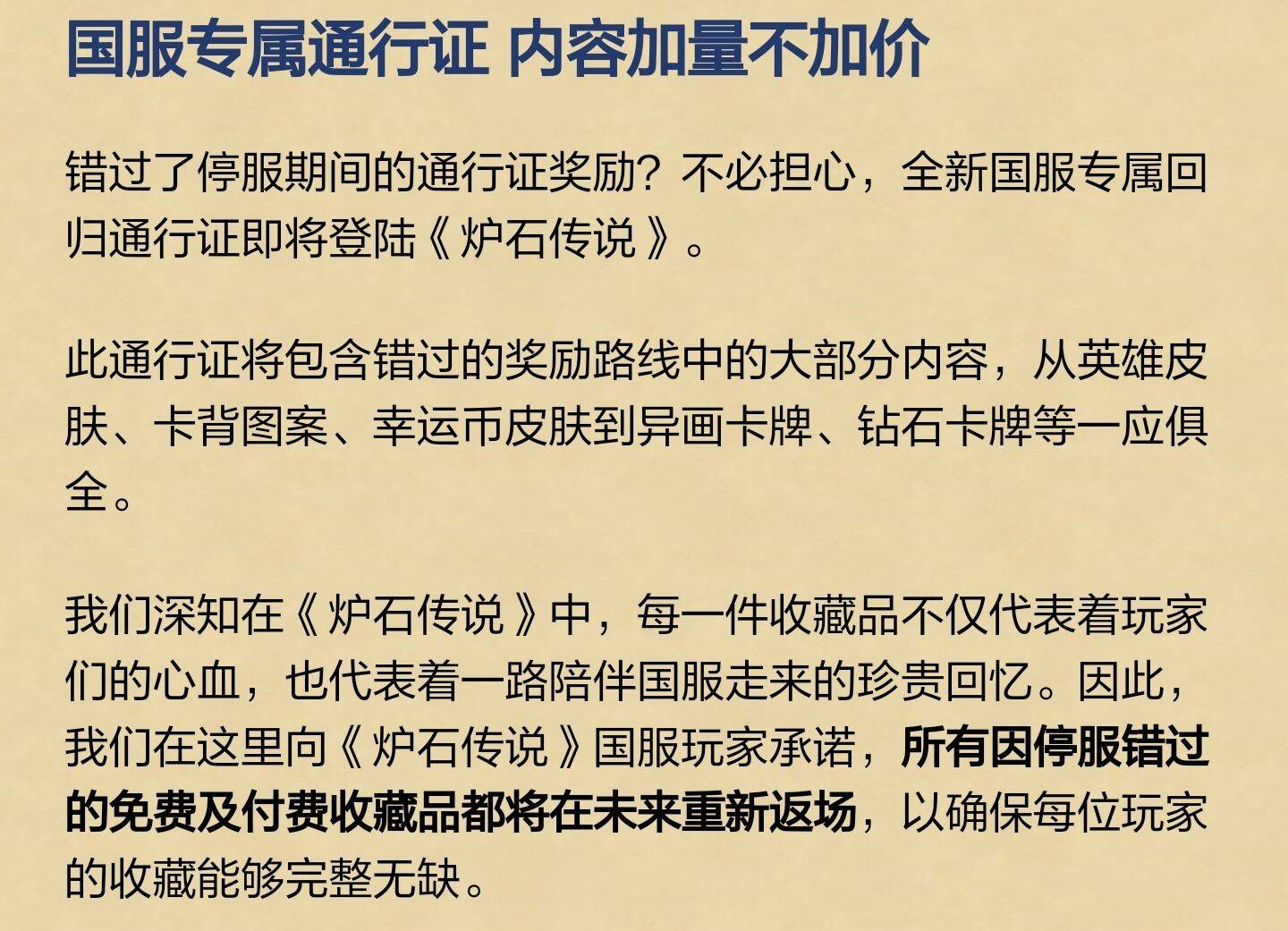 前面已经贴了黄贴的内容了,如果不太清楚补偿内容的玩家可以看一下,关于这个补偿,意味着你需要靠氪,或者是分老卡来填补威兹班以及胜地的空白,如果你是轻度玩家(只玩一个或两个职业,甚至一个版本只玩一个卡组)(后者还好一点因为有回归卡组),这意味着拆东补西策略完全失败,若不能氪金补上这块空白,你的游戏体验会大大降低
