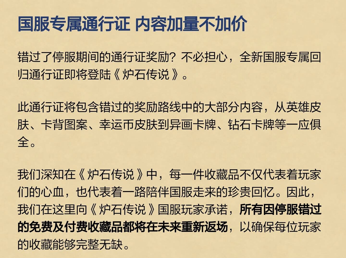 这种补偿方式明显是对国服宝具,因为国服玩家明显是更偏重于狂野模式,这种补偿。对于狂野玩家是相当利好的,但也是对于标准玩家来说就是致命打击。送这一年的新卡用处不大,反正九月末回归明年又要退环境了,你还得氪金,顺便还分化了玩家,声量小的标准玩家被声量大的狂野玩家压过去之后怨气更大,加剧内斗。