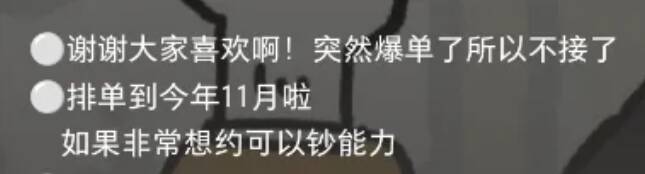 不过由于“赛博笔仙”事件,这位“好沟通”的画手意外获得流量,爆单了,目前的空闲期已经排到了今年11月。