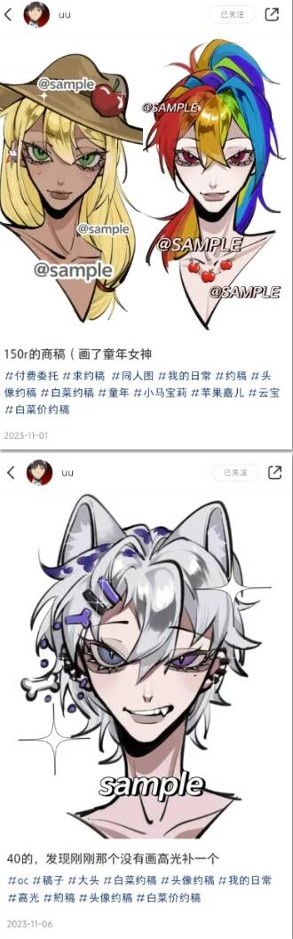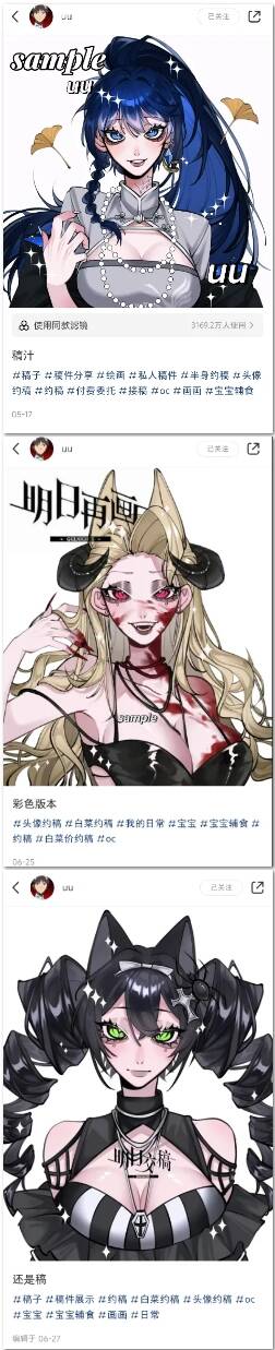 小红书上面,有一个接稿的画师,我们就叫她UU吧。