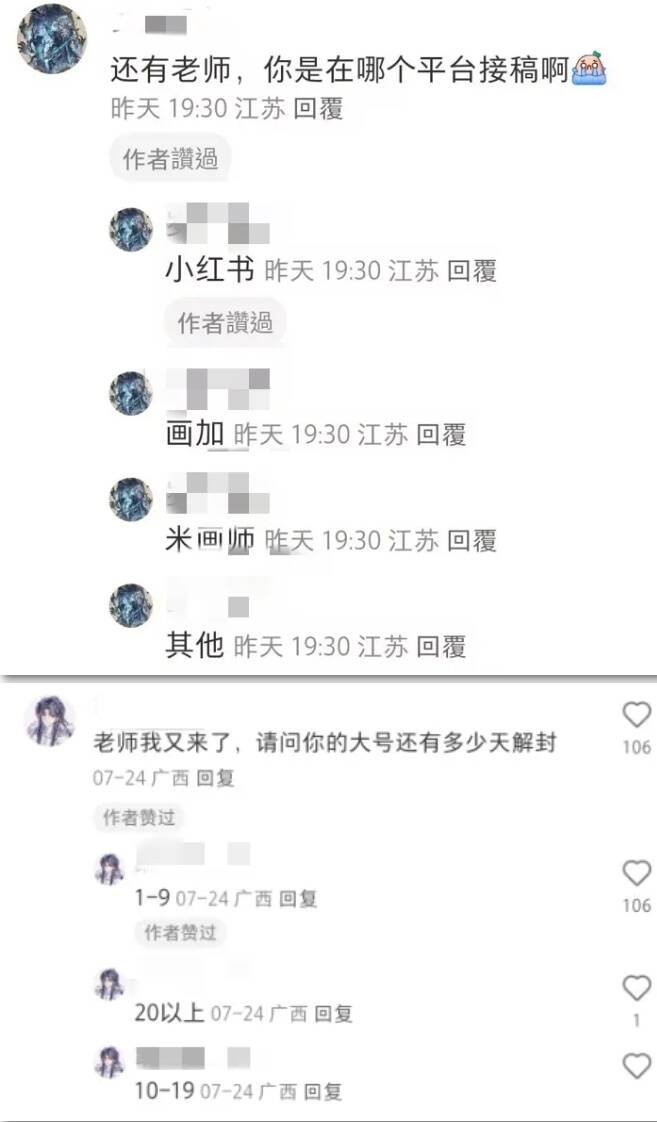这封禁的一个月又不能回复评论又不能发东西,瞬间让UU的高冷值提高了不少,不过如此下去也不是办法,画师和粉丝之间不能互动,没单子接了,那是急上加急啊。也许是粉丝和UU之间心意相通,他们找到了一种非常清奇的互动方式。
