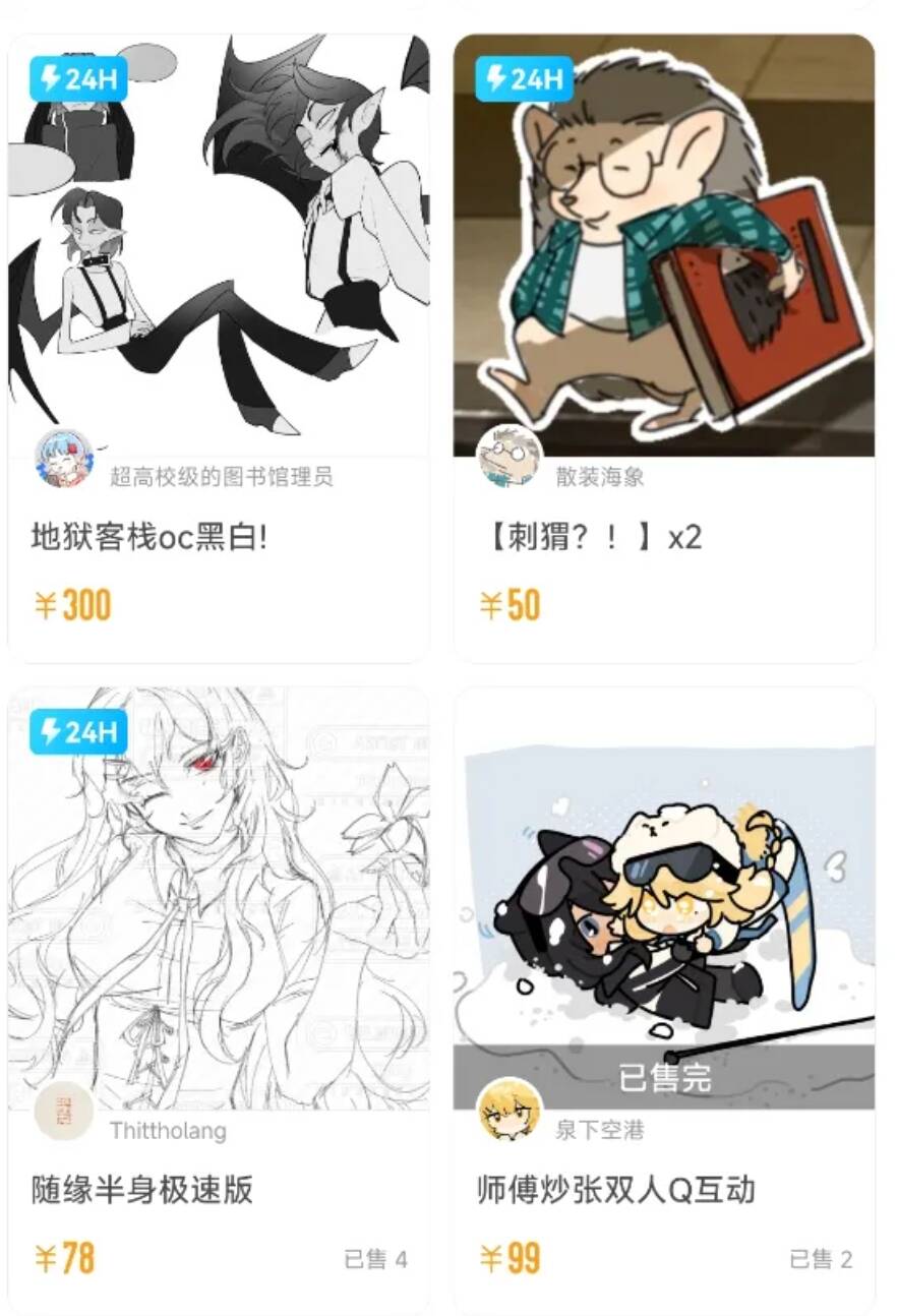 因为她的稿子画风独特外加售价比较便宜,所以经常会有一些人找她来约稿,她的稿件展示也渐渐多了起来。