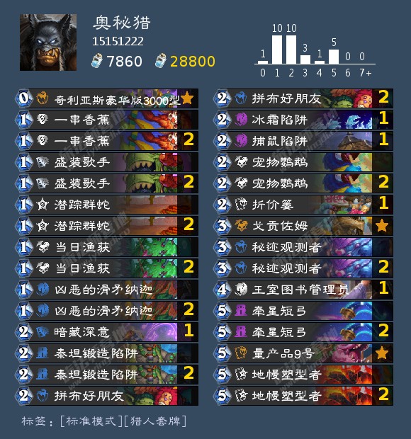 新版本奥秘猎,主要思路是前中期铺场然后高额直伤斩杀,注意奥秘是为了场面服务。