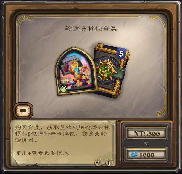 含构筑模式盗贼新皮肤“轮滑布林顿”和5盗贼包,售价1000符文石。