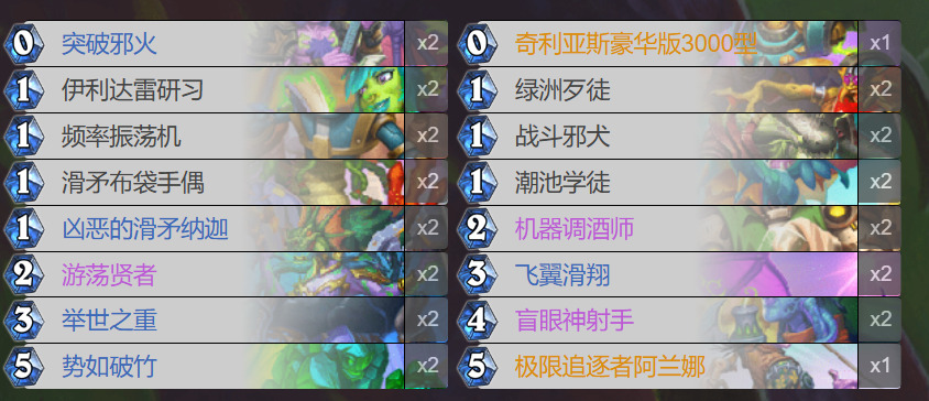 学徒存绿洲歹徒→射手→学徒→其他0费法术/1费法术→其他纳迦→绿洲歹徒→发现的0费纳迦→法术→学徒