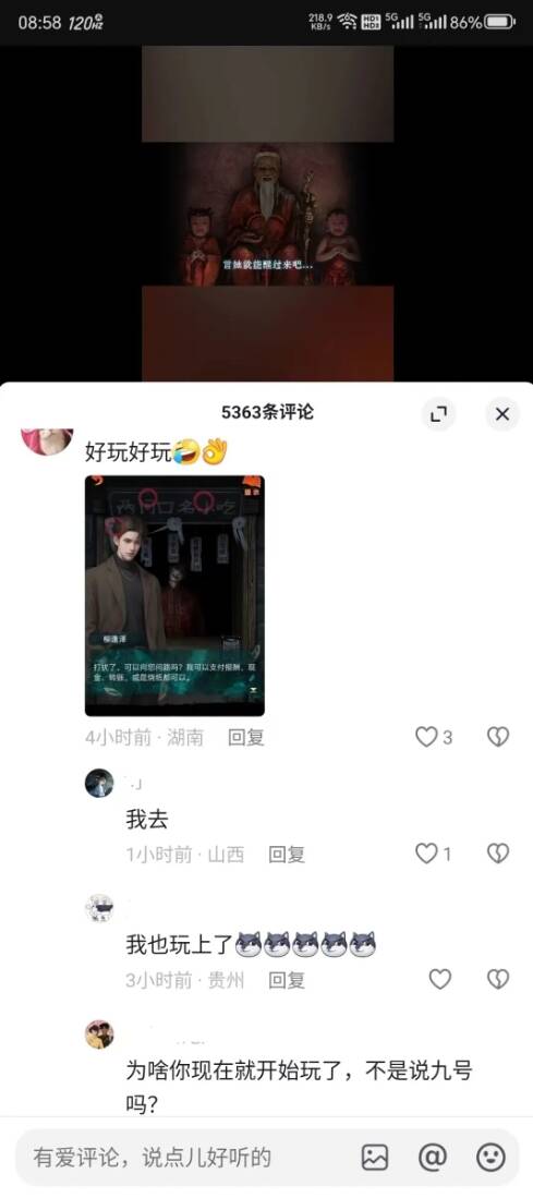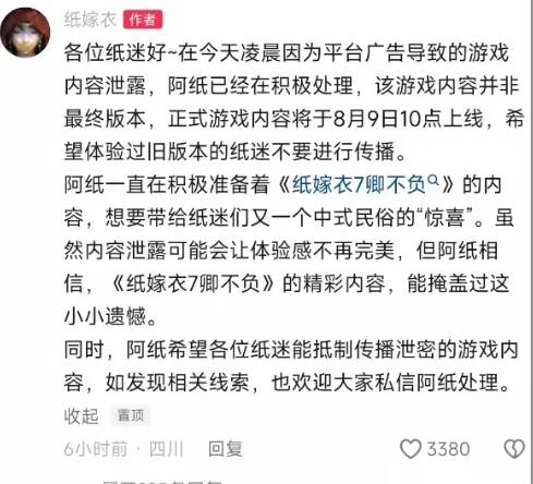 ?什么?偷跑了?!不是9号10点吗?现在单机游戏也流行偷跑了吗?后来姬看了一下,在抖音上,甚至已经有部分主播开始直播《纸嫁衣7》了。