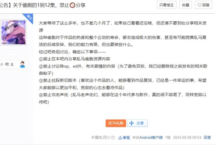 面对偷跑,乱马吧的管理人员发布了贴吧新规则,并且进行了置顶。