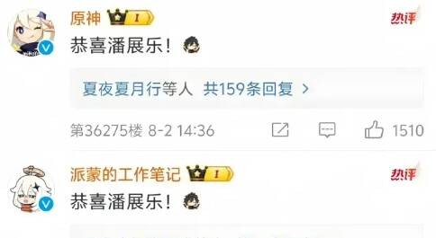 于是《原神》官方一起来庆祝潘展乐夺冠,并且还用了钟离的表情包。