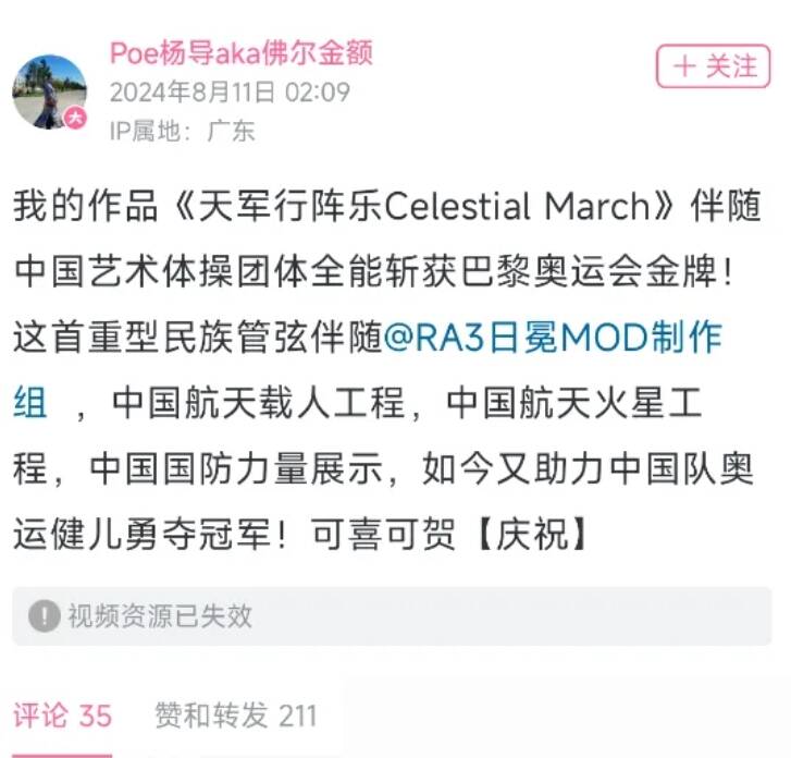 这已经不是此曲第一次被选为官方的BGM了,作曲在得知曲子被选为艺术体操的BGM后也非常惊喜(因为版权原因杨导转发的视频链接失效了)。
