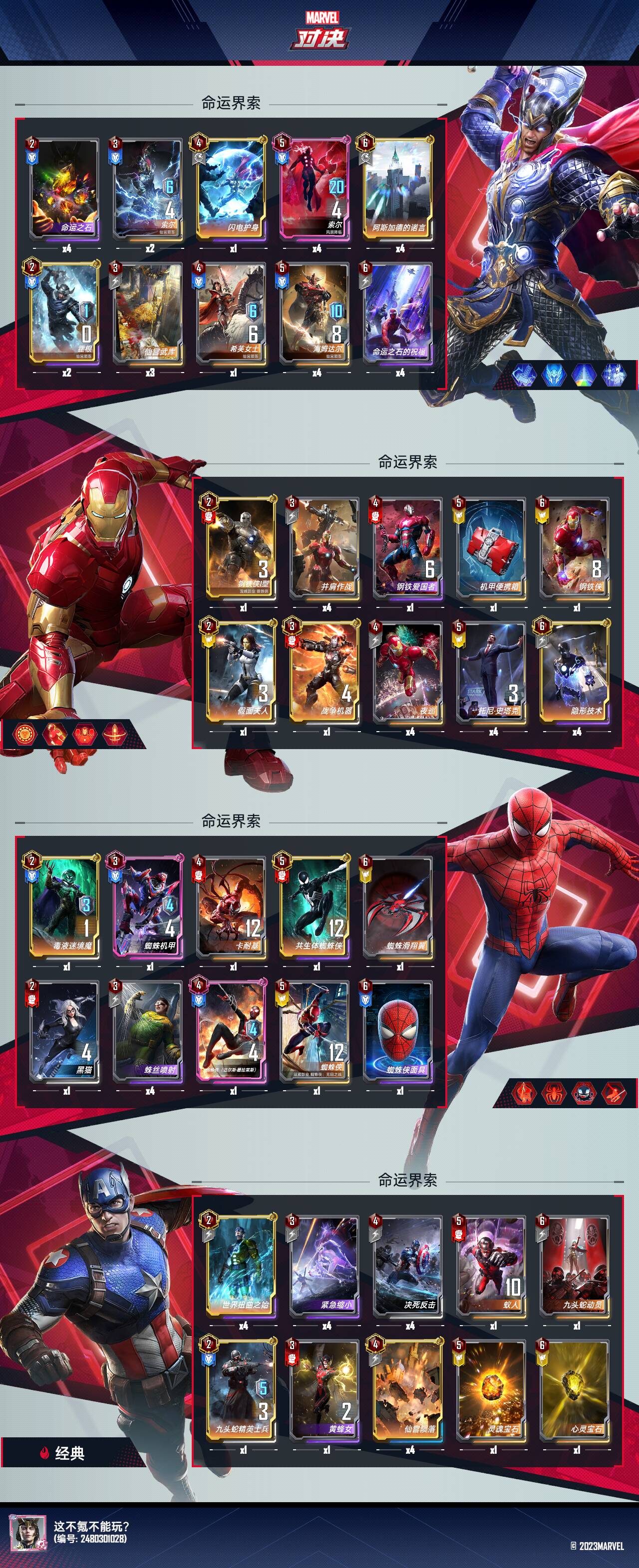 第二回合:这里我带了界蜘蛛机甲,他的作用也很明显,让他身边站两个嘲讽型角色,可以提供被动打出伤害,也不容易输,如果第一回合就上本的话,给出角色牌都拿,这纯看运气,能来核心牌就更好了。