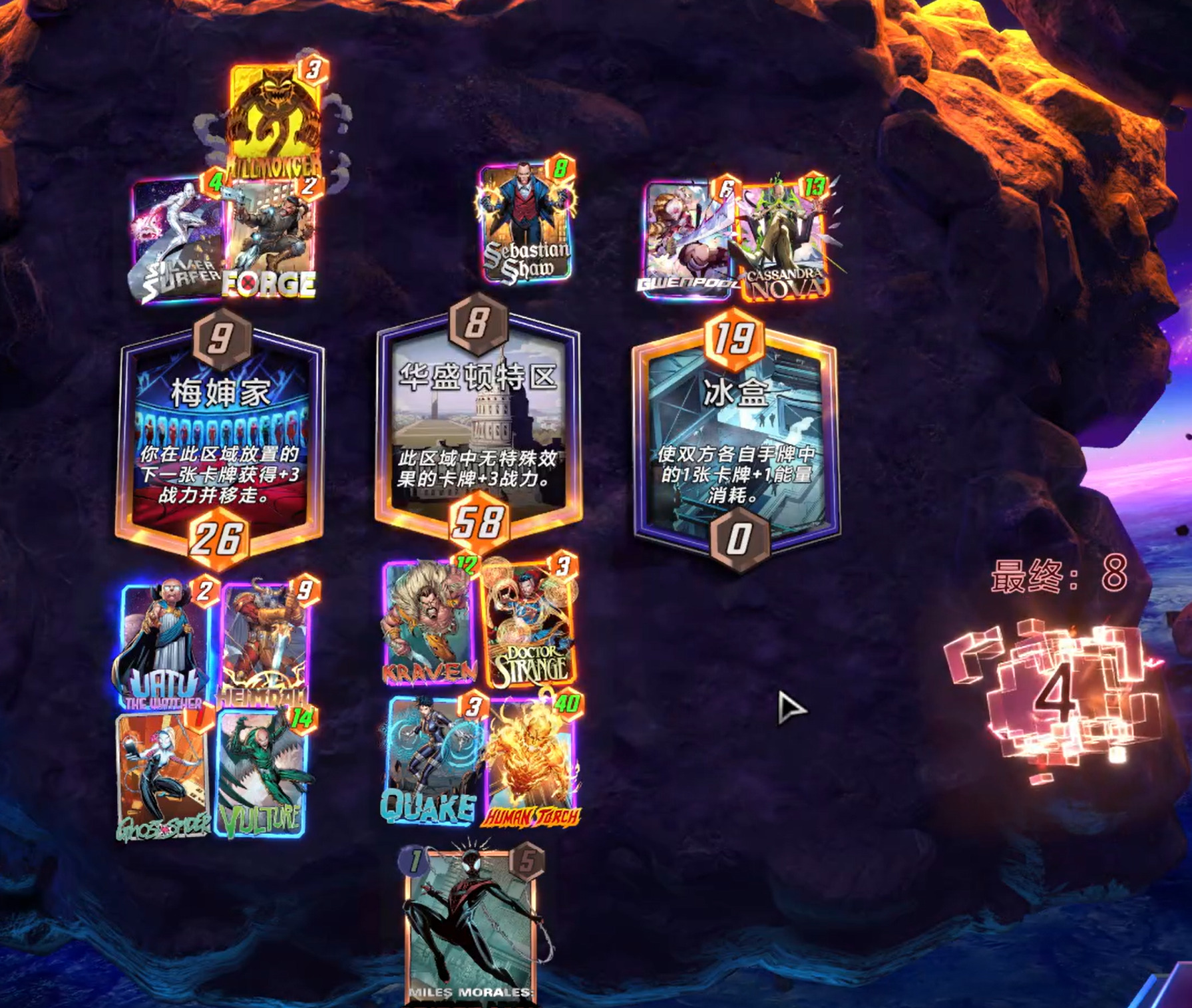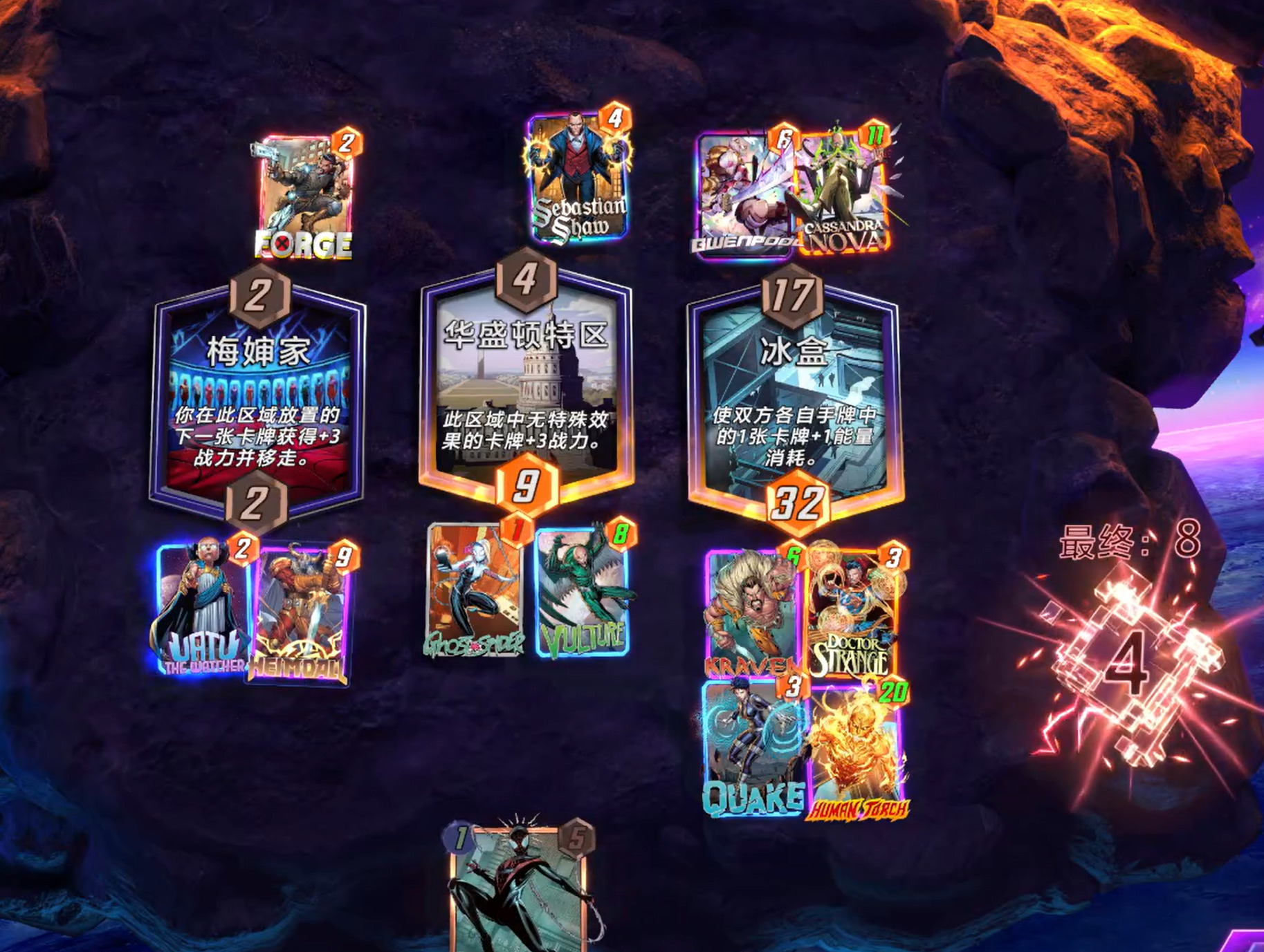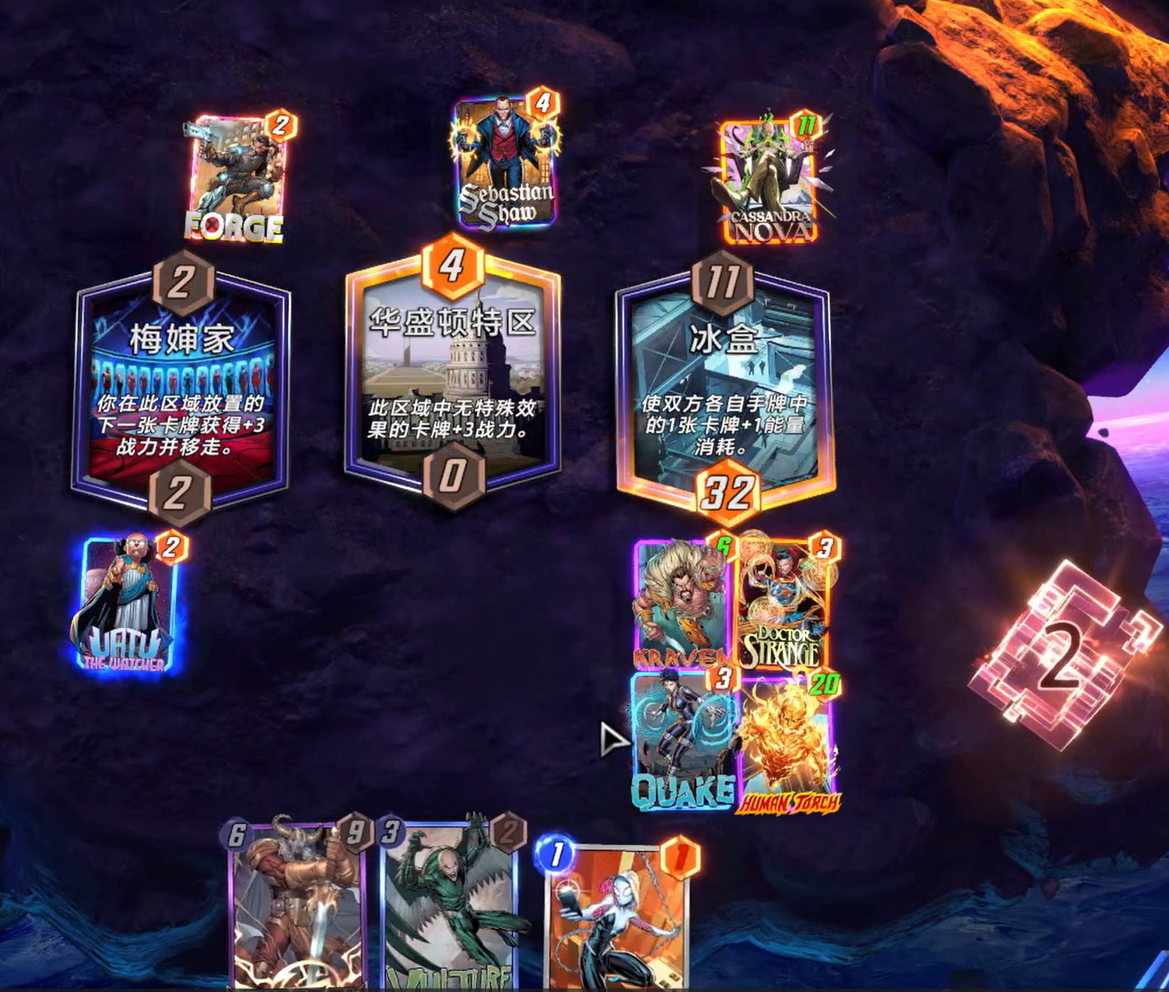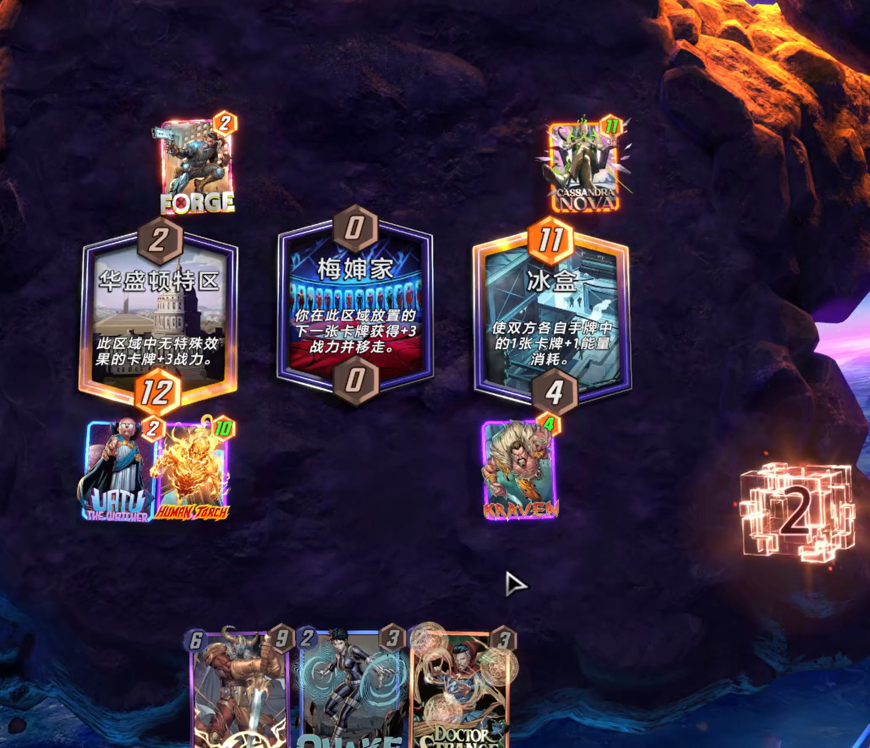 幽灵蜘蛛、奇异博士、赫拉克勒斯、海姆达尔可以移动该牌,如果移动两次,战力就到达到 15点