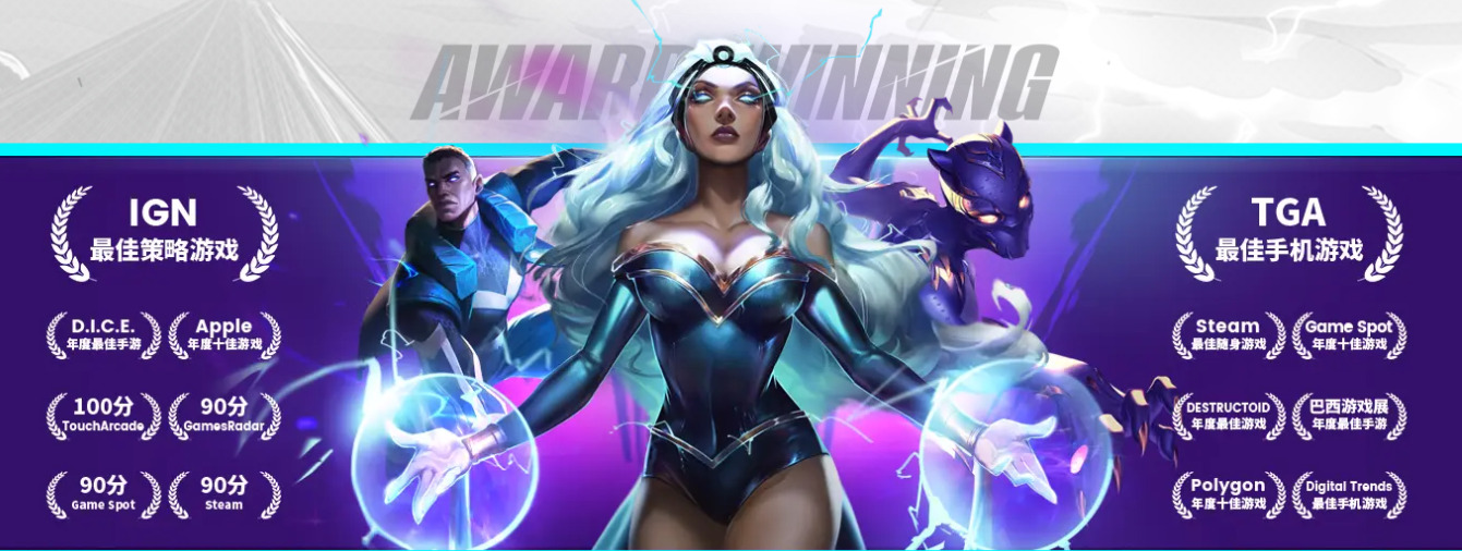 漫威终极逆转(漫威snap)获得的奖项也不是一般游戏能碰瓷的,在The Game Awards 2022(简称TGA)力压众多优质游戏斩获“TGA年度最佳移动游戏” 先后获得了“IGN最佳策略游戏”、“DICE年度最佳手游”、“Apple创新思维设计”等多个大奖。游戏上线后不久就便冲上50+国家地区的App Store免费榜Top10,在全球范围内拥有数千万玩家。
