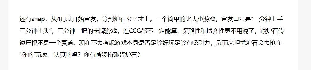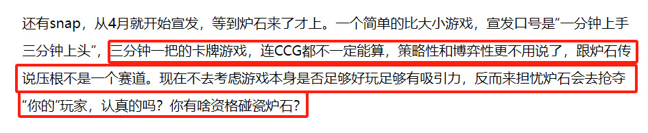 作为一个漫威终极逆转的攻略作者,炉石我也略有涉猎,对于 氟化银二号 的言论,这种踩一捧一的行为,我只能表示:“逆天”。由于我对篇幅中提到的其他游戏不专精,我就漫威终极逆转(漫威snap)这款游戏,进行一些探讨。以下为作者言论: