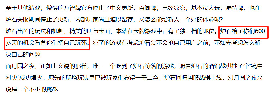 实话说,不知道的还以为炉石是您发明的,每个游戏都有其游戏玩法和特性,这种踩一捧一的做法实在是令人作呕,难道炉石就没有他自己的问题?脚本刷经验没有嘛? 酒馆战棋就有你说的这么神?那这么多拔线流是哪里来的?