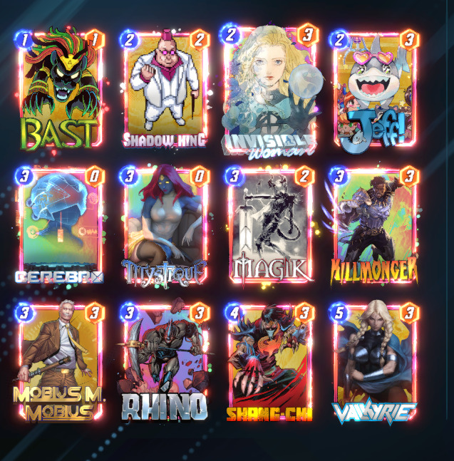 eyJDYXJkcyI6W3siQ2FyZERlZklkIjoiQ2VyZWJybyJ9LHsiQ2FyZERlZklkIjoiTXlzdGlxdWUifSx7IkNhcmREZWZJZCI6IkludmlzaWJsZVdvbWFuIn0seyJDYXJkRGVmSWQiOiJWYWxreXJpZSJ9LHsiQ2FyZERlZklkIjoiQmFzdCJ9LHsiQ2FyZERlZklkIjoiS2lsbG1vbmdlciJ9LHsiQ2FyZERlZklkIjoiUmhpbm8ifSx7IkNhcmREZWZJZCI6IkplZmZUaGVCYWJ5TGFuZFNoYXJrIn0seyJDYXJkRGVmSWQiOiJNYWdpayJ9LHsiQ2FyZERlZklkIjoiTW9iaXVzTU1vYml1cyJ9LHsiQ2FyZERlZklkIjoiU2hhZG93S2luZyJ9LHsiQ2FyZERlZklkIjoiU2hhbmdDaGkifV19