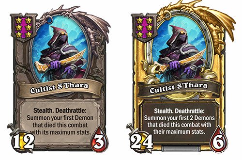 - 新:[12/3] 潜行。亡语:召唤你在本场战斗中死亡的第一个具有其最大属性值的恶魔。