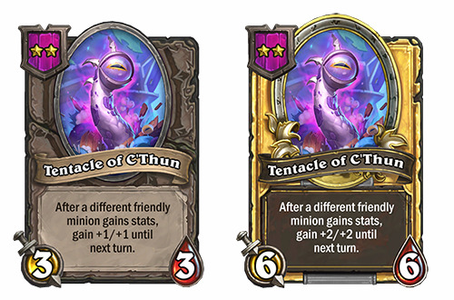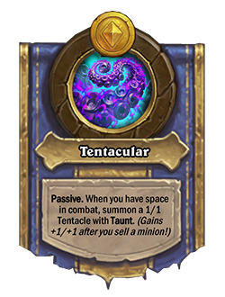 - 旧:战斗开始时:召唤一条2/2并具有嘲讽的触须。(在你出售一个随从后获得+1/+1!)